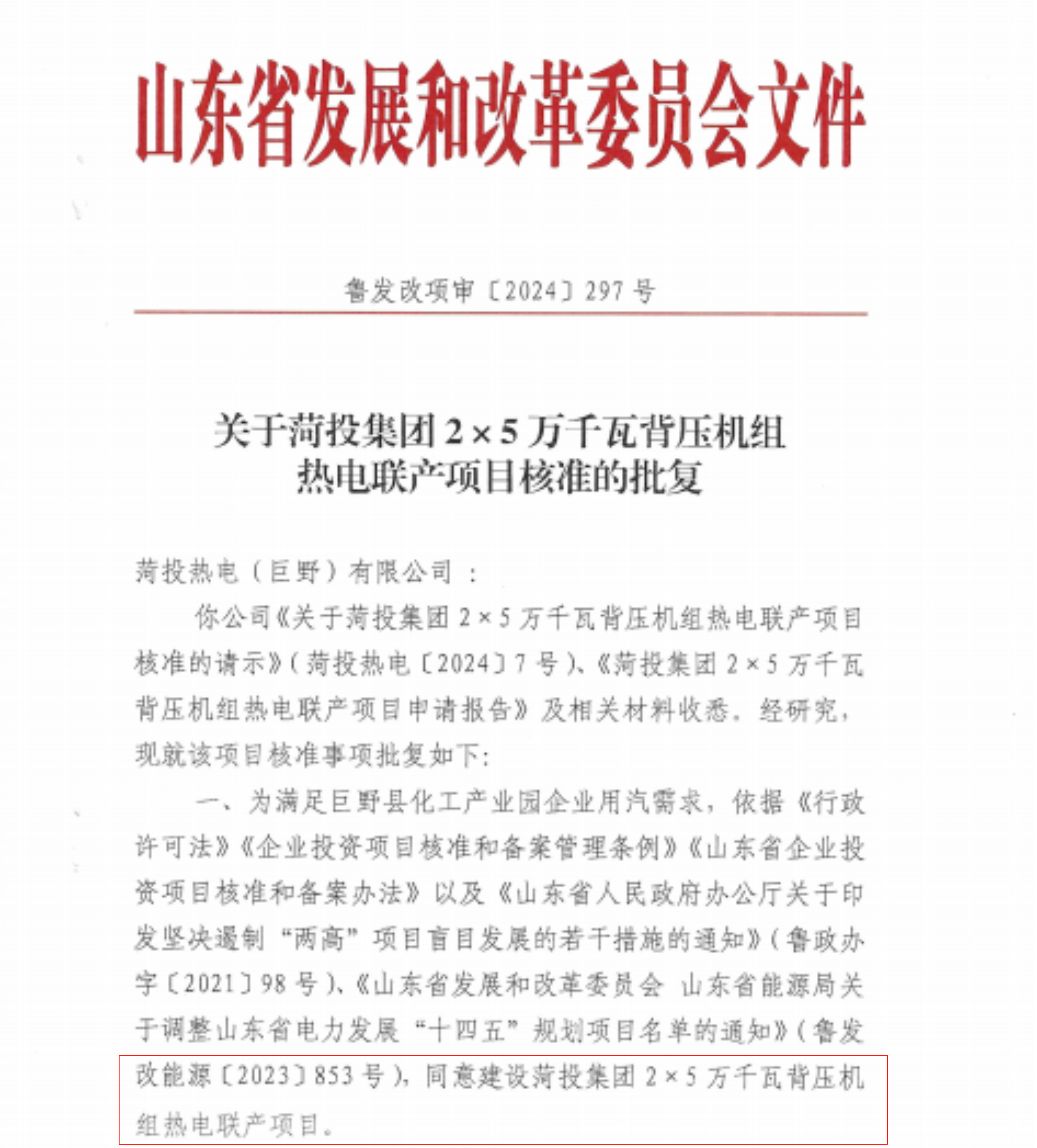 菏投集團(tuán)熱電聯(lián)產(chǎn)項(xiàng)目獲得省發(fā)改委核準(zhǔn)批復(fù)