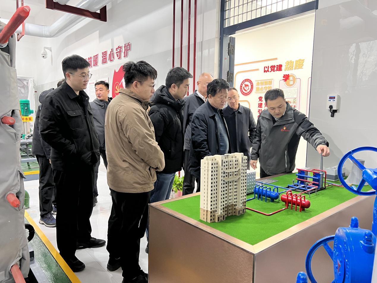 在永恒熱力,共建雙方先后到公司辦公區(qū)域及黨建示范點(diǎn)藍(lán)岸公館換熱站觀摩,現(xiàn)場(chǎng)了解了永恒熱力黨支部“四心一衛(wèi)士”黨建品牌內(nèi)涵,以及在推進(jìn)黨建工作與生產(chǎn)經(jīng)營(yíng)深度融合方面,打造菏投供熱服務(wù)品牌情況。