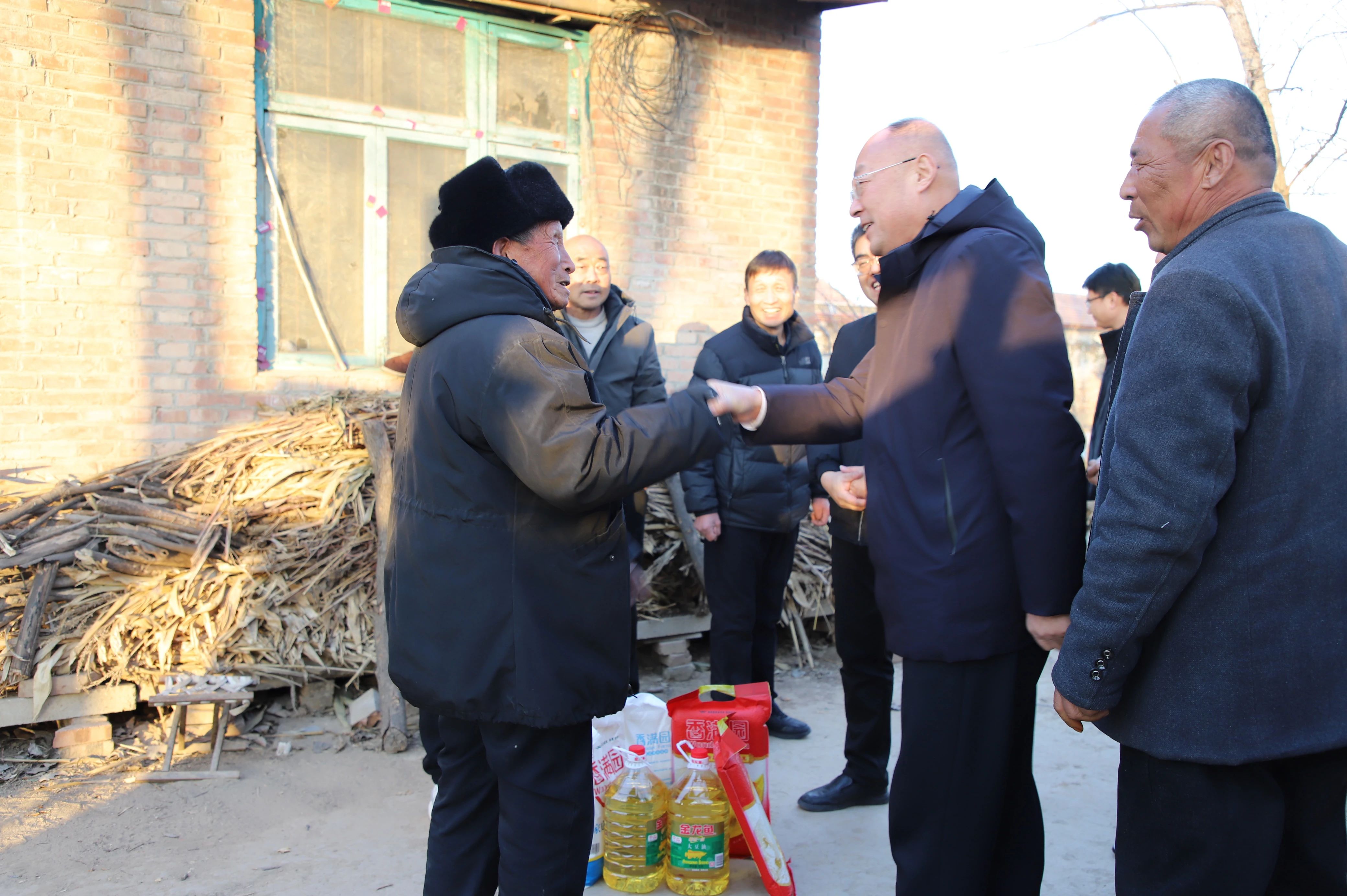 在鄆城縣唐廟鎮(zhèn)及西北管區(qū)有關(guān)同志的陪同下,吳光勇一行走訪慰問(wèn)了幫扶村的困難黨員、孤寡老人和脫貧戶等特殊群體。每到一戶,都與他們親切交談,詳細(xì)了解他們的身體狀況、家庭生活情況以及存在的實(shí)際困難,認(rèn)真傾聽(tīng)他們的心聲和訴求,并為他們送上大米、食用油、面粉,向他們致以節(jié)日的問(wèn)候和美好的祝福。