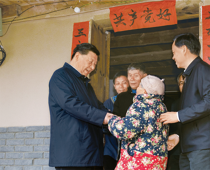 2019年4月15日至17日,中共中央總書記、國家主席、中央軍委主席習近平在重慶考察,并主持召開解決“兩不愁三保障”突出問題座談會。這是4月15日下午,習近平在石柱土家族自治縣中益鄉(xiāng)華溪村看望貧困戶譚登周一家。